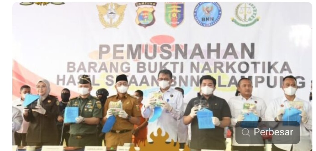 Transsewu.com, Lampung – Anggota Komisi I DPRD Provinsi Lampung, M. Rahmat Visa Ridi Arifin, S.M., menghadiri kegiatan pemusnahan barang bukti narkotika yang digelar Badan Narkotika Nasional (BNN) Provinsi Lampung.