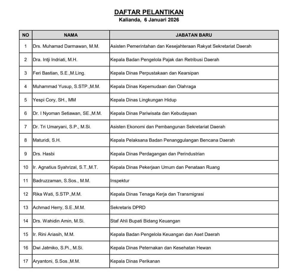 Berikut Daftar Pejabat Pimpinan Tinggi Pratama Yang Dilantik:
