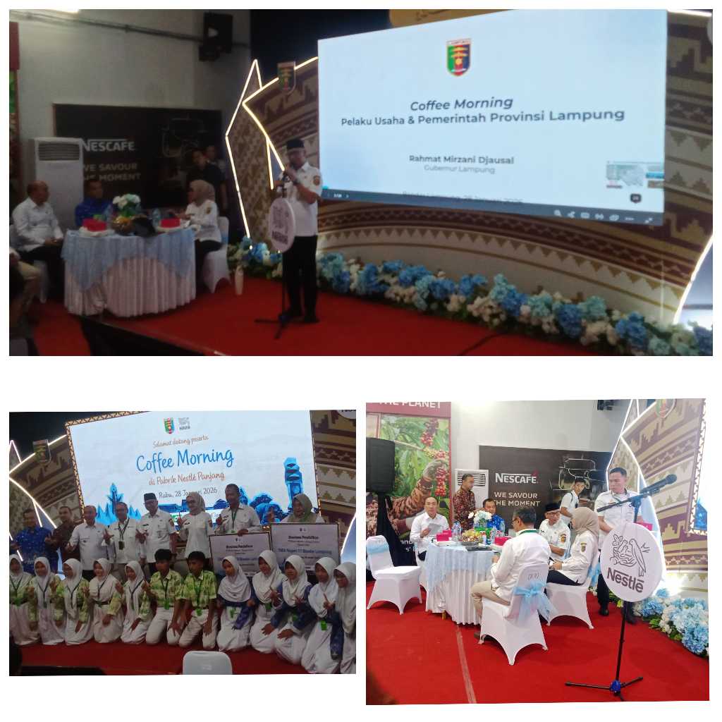 Transsewu.com – BANDAR LAMPUNG, PT.Nestle menggelar Coffee Morning bersama pimpinan dunia usaha yang dipusatkan di PT Nestlé Indonesia Pabrik Panjang, Rabu (28/1/2026). Kegiatan ini menjadi ruang dialog strategis antara pemerintah daerah dan pelaku industri dalam memperkuat kolaborasi pembangunan ekonomi berkelanjutan.