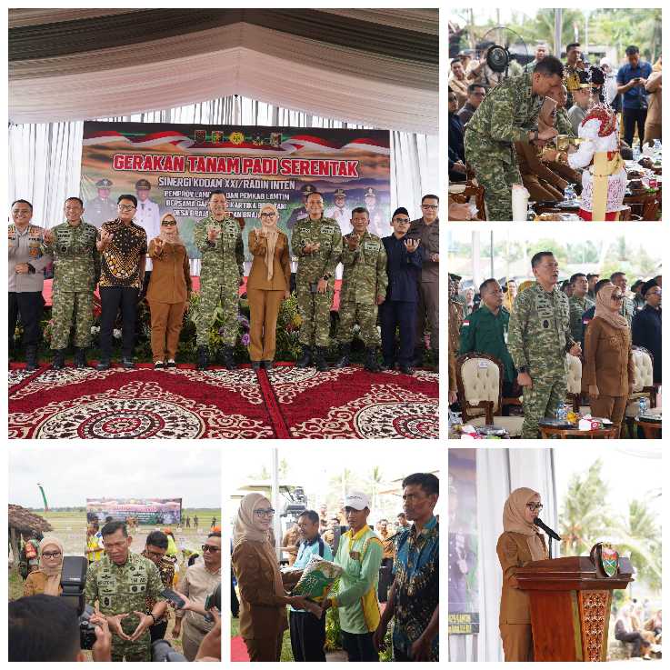 Sementara itu, Pangdam XXI/Radin Inten, Mayjen TNI Kristomei Sianturi, S.Sos.,M.Si., (Han), menegaskan bahwa gerakan tanam padi serentak ini sejalan dengan kebijakan Presiden Prabowo Subianto yang menempatkan ketahanan pangan sebagai fondasi kedaulatan bangsa.