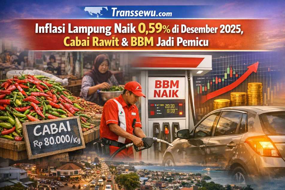 Transsewu.com – BANDAR LAMPUNG , Indeks Harga Konsumen (IHK) di Provinsi Lampung pada Desember 2025 tercatat mengalami inflasi sebesar 0,59 persen (month to month/mtm). Angka ini lebih tinggi dibandingkan inflasi November 2025 yang berada di level 0,36 persen (mtm).