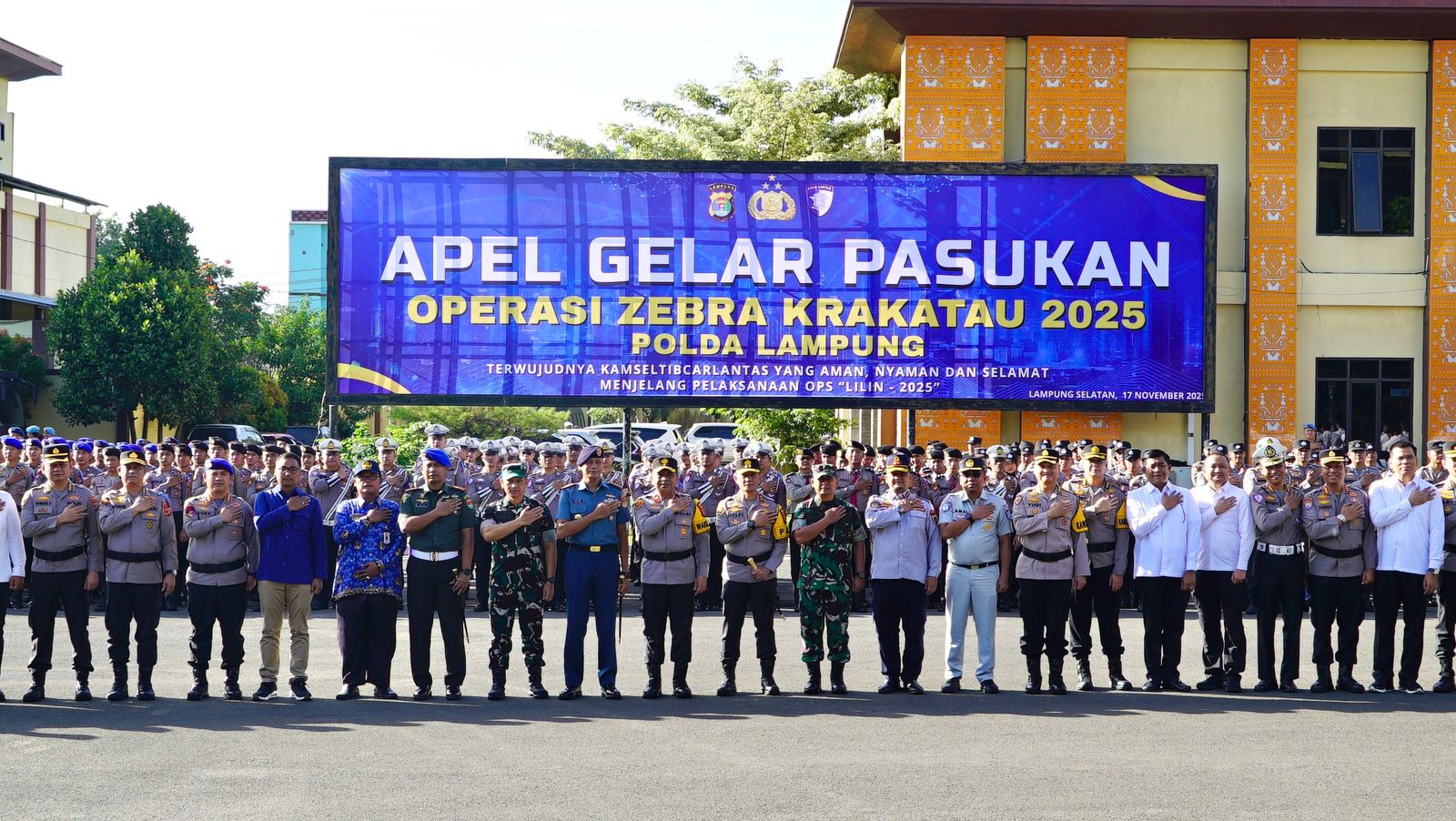 Transsewu.com – Lampung Selatan , Kasdam XXI/Radin Inten Brigjen TNI Andrian Susanto, S.I.P., M.Han., M.I.Pol., menghadiri Apel Gelar Pasukan Operasi Zebra Krakatau 2025 yang berlangsung di Lapangan Apel Polda Lampung, Jalan Terusan Ryacudu, Way Huwi, Jati Agung, Lampung Selatan, Senin (17/11/2025). Tahun ini kegiatan mengusung tema “Terwujudnya Kamseltibcar Lantas yang Aman, Nyaman, dan Selamat Menjelang Pelaksanaan Ops Lilin 2025”.