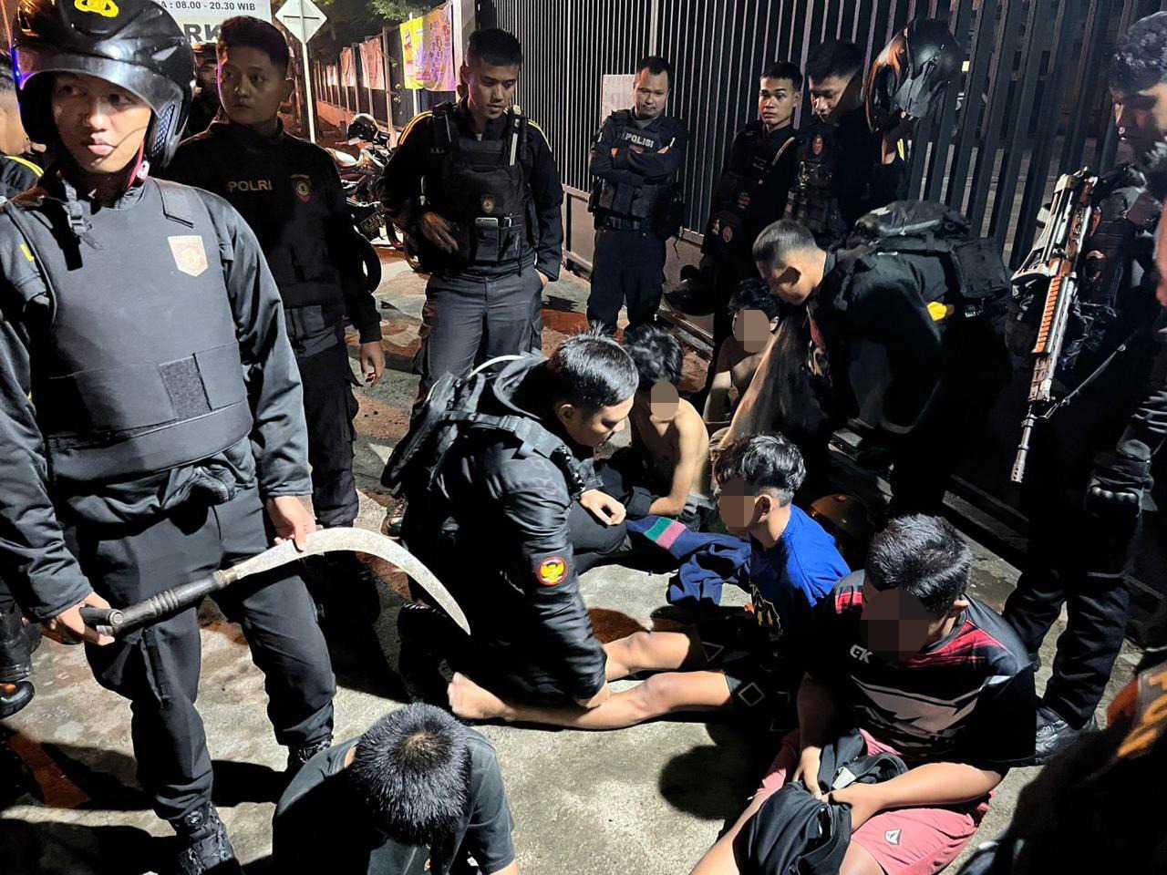 Petugas mengamankan para remaja ini pada Minggu (9/2/2025), sekitar pukul 02.15 WIB, di sekitar jalan Soekarno Hatta, sebelah Toko Depo Bangunan, Sukarame, Bandar Lampung.