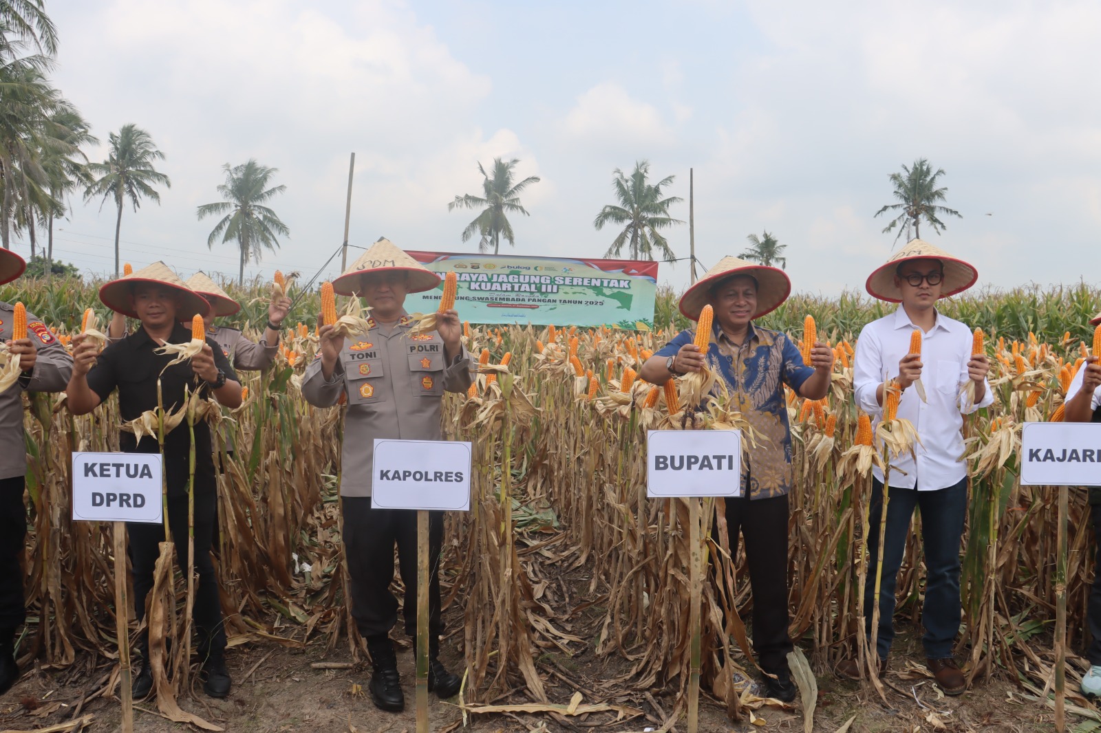 Turut hadir Sekda Lampung Selatan Supriyanto, Wakapolres Kompol Made Silpa Yudiawan, serta sejumlah pejabat Pemkab dan DPRD Lampung Selatan. Dari sektor pertanian, tampak Kepala Dinas Pertanian Mugiyono dan Kepala Dinas Ketahanan Pangan Eka Riantinawati, yang memberikan dukungan teknis bagi peningkatan hasil produksi jagung.