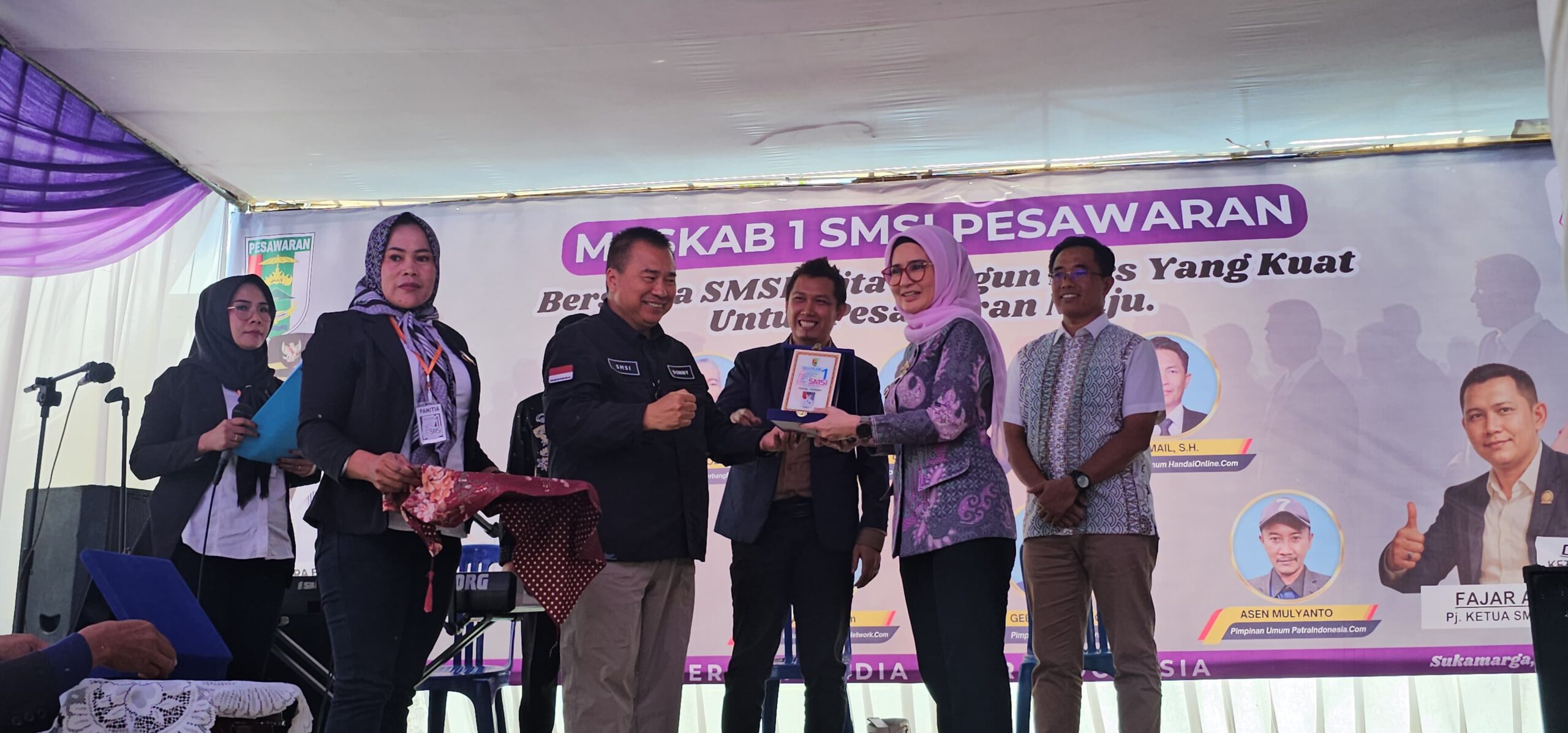 Selain itu, Ketua Umum SMSI Provinsi Lampung Donny Irawan memberikan plakat penghargaan kepada Bupati Pesawaran Nanda Indira Bastian.