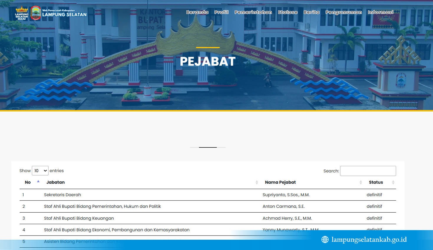 Heri mengungkapkan, sebelumnya daftar pejabat hanya dimuat dalam bentuk berita, sehingga sulit ditemukan jika arsip sudah lama tersimpan. Kini, informasi tersebut tersedia di menu khusus “Pejabat” yang dapat diakses langsung melalui lampungselatankab.go.id/pejabat.